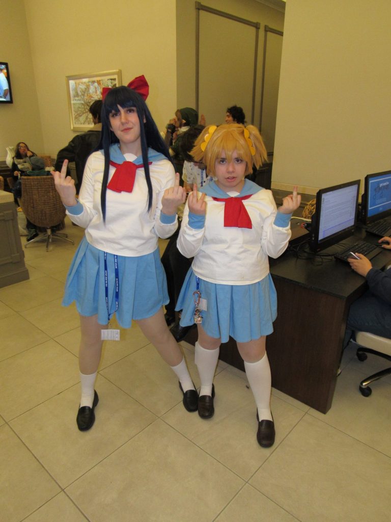 None of the panels started before noon that Friday, which was good, because it gave me a lot of time to rest from my drive up, as well as allow me to take plenty of time—probably too much—languishing in the room hoping to at least try to get a little better this weekend. Nonetheless, the first panel I went to was “Are You Smarter than a Weeaboo?” It was a game show panel, and there were plenty of game show panels this weekend; whether or not this was a coordinated effort between would-be panelists or just coincidence has yet to be ascertained. In any event, it was a Jeopardy!-style format, distinctly not like the Are You Smarter than a 5th Grader? This, too, would be a reoccurring thing this weekend. The three contestants—me and two other people from the crowd—were paired up with other guests as we staggered through each round. I was in last place, but we just decided to bet everything because why not. The last clue was related to Tatsunoko vs. Capcom, which I immediately jumped on. We were the only ones to get the answer right, and ended up winning. I took home a goodie bag filled with anime DVDs and otaku candy. So good stuff so far.